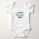 On the front of the bodysuit, you'll find the cute and heartwarming message "Mummy's lucky charm" printed in bold and playful fonts. The phrase is accompanied by a charming little graphic of a shamrock, which adds an extra touch of cuteness to this already adorable outfit.
