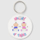 Cute key chain with "Mummy of Twins" in pink and blue text and cute baby boy and girl in blue and pink clothes.