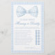 Sophisticated classic "Guess who? Mummy or Daddy" game designed for a baby boy shower, adorned with a charming gingham pattern bow tie. Engage your guests with this delightful game, perfect for adding fun and excitement to your celebration while creating cherished memories.