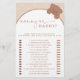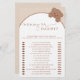 Step into a world of whimsy and anticipation with our Mummy or Daddy Teddy Bear Pink Baby Shower Game, a heart warming celebration where dreams take flight amidst a backdrop of soft pastel hues and retro charm. This enchanting design features a darling beige bear soaring in a basket, lifted by a magnificent air balloon crafted from an array of small beige and gold balls. Each detail is lovingly crafted, capturing the essence of joy and excitement as the little one's arrival draws near. The soft pink background envelops the scene with a gentle warmth, while the retro font adds a touch of nostalgic elegance to the overall composition. Matching items available.
