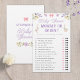 This baby shower game is a mummy or daddy guess who said it game. It features watercolor wildflowers, lavender, daisies and geese. Personalise the back of the card with the mummy's name. Matching products available.