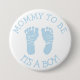 Mummy to be Blue and White Baby Shower Button. It also says, "Its a boy!"