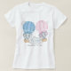 This whimsical baby shower t-shirt features adorable baby boy and girl elephants flying among the clouds in a blue and pink hot air balloons.