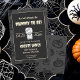 Time to celebrate the mummy to be with this cute black and white baby shower invitation! Featuring a cute little mummy on a background of jack o lanterns, this invitation is the perfect combination of cute and spooky! Slimy fonts combined with modern and sophisticated lettering makes this invite perfect for a variety of themes. Great for Fall or Halloween babies with a design that compliments a number of colours and themes! Perfect for any Halloween or October baby shower!
