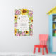 WELCOME SIGN with elegant script typography, "Mummy-to-Bee" Bumblebee Sunflower Pink Hydrangeas for a baby girl's shower decor. Bumblebees with soft golden honeycomb pattern background. Sunflowers, daisies and dusty pink summer hydrangea flowers with bumblebees. Art painted in watercolor by internationally licensed artist and designer, Audrey Jeanne Roberts, copyright.