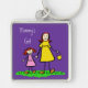 Mother and daughter hold hands. The woman's dress reads "mummy" and the little girl's dress reads "me". The family characters have red hair and light skin. This parent and child family character picture also comes in multiple ethnic family versions. Text notes "Mummy's Girl", but you can change it to add your own names for a special Mother or Mummy gift! Make a personalised family keychain with your own text and images using the "Customise It" button!