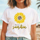 The T-shirt design features a bright yellow sunflower with a fun, leopard-print centre, adding a stylish twist to a classic look. Below the flower, the text says "Mummy's sunshine", handwritten style that’s outlined in yellow and black for a bold, eye-catching effect. This design brings warmth and a touch of wild spirit. Perfect as a gift for Mother's Day or any occasion to celebrate moms.
