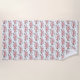 Beach towel features an original marker illustration of a red exercise resistance band, with MOMMY'S WORKOUT BUDDY in a fun font.