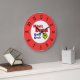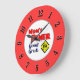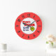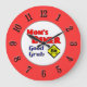 This kitchen saying clock reads Mum's Diner good grub in retro red and blue letters with a hamburger on yellow. The numbers are on a red outside face. A retro restaurant advertising art theme for you or your favourite short order cook. Click Customise it to change background colours and more.