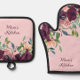 Mum's Kitchen Burgundy Pink Floral Oven Mitt & Pot Holder Set