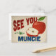 A charming Muncie Indiana vintage travel postcard featuring a lovely red apple, along with fun retro style text that says, "See you in Muncie"
