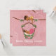 A beautiful invite for a mundan sanskaar ceremony for a baby girl. On the front is an illustration of a cute Hindu baby girl sleeping in a swing. Above her baby Ganesha is blessing the sleeping baby by gently showering the baby with flower petals. This is a perfect invite for a mundan sanskaar ceremony, but is also perfect for a birth announcement of birthday invitation for an Indian or Hindu baby.