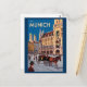 Munich Germany Marienplatz Travel Art Vintage Postcard