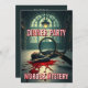 Details like the magnifying glass over the body, the blood drenched floor, light streaming through an arched window, and a glowing chandelier above create an atmosphere worthy of a classic detective novel. With fully editable text on both the front and back, you can personalise it for dinner parties, birthday events, Halloween gatherings, or immersive murder mystery nights.