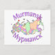 Beautiful hand-rendered colourful map of the Russian Federation with Murmansk city location marked with a flag. City name also in Russian, Мурманск. Unique Russia adoption gift for families with children from Murmansk. Designed by Hendrika of www.RedThreadMaps.com