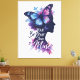 This striking design features a butterfly gracefully rising from a woman's silhouette, embodying transformation. The flowing text 'Be Your Own Muse' complements the art in soft blues, purples, and pinks, creating an inspiring piece perfect for shopping bags. This is an AI generated image.