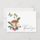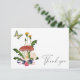 Gorgeous mushroom themed invitation with watercolor dandelions wildflowers and berries, butterfly, fly agarics mushrooms.