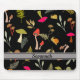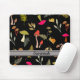 This country chic botanical mousepad can be personalised with a name or initials. It has a black background with pink, orange and green mushrooms. Interspersed is a variety of foliage. Bright green beetles and orange snails give this design a whimsical tone.