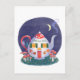 Cosy and quaint, this mushroom teapot house shines under the moonlight surrounded by spotted red mushrooms. Original illustration by Noël Snow.