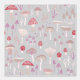 Fun mushroom, toadstool and fungi design in cream, blush pink with touches of red on a soft grey background. Original art by Nic Squirrell.
