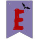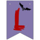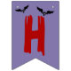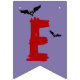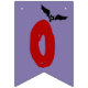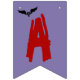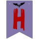 A banner with "Happy Halloween" in red on a purple background. Cartoon vampire mushrooms appear on two of the flags. Batshrooms (flying bat mushrooms) fly around the letters and vampire mushrooms.