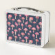 Colourful watercolor navy blue and pink mushroom pattern lunchbox. Original art from artists own illustrations. Matching items available. Please use the message me button below for help with further customisation and special requests. © Zoe Chapman Design