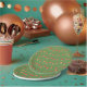 Brown mushrooms, pattern paper plates with cool pumpkin art drawing, custom background.