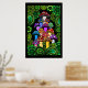 A poster with colourful psychedelic mushrooms surrounded by green paisley and green mandalas.
