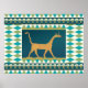 This art is inspired by the Gate of Ishtar of ancient Babylon, c. 575 BCE, and shows the serpent-dragon Mushussu. This hybrid creature has a scaly body and head like a reptile, a lion's front legs, hind legs with raptor's feet and a scaled lion's tail. In addition to all this he sports both a curved horn and an upright one on top of his muzzle. Mushussu was Marduk's dragon and is also known from the Old Testament of the Bible as the monster that Daniel fought and managed to kill by poisoning him.