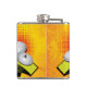 Well made flask, a little better than I had expected. Flask came in clear plastic box which gave it a nice presentation when I took it out of the zazzle packaging. Image is not printed on flask but on sticker. Don't know how this will hold up I haven't used it yet. This would make a Great gift! I plan to purchase more for friends! Cheers. I thought a little brighter than computer. Very crisp, writing wasn't