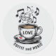 Start your day with the perfect harmony of coffee and music. This sticker features a cosy cup of coffee with whimsical, musical steam notes rising into the air, paired with a cute biscuit adorned with a heart. The phrase "Love Coffee and Music" ties it all together, making it a must-have for coffee lovers and music enthusiasts alike. Perfect for decorating laptops, water bottles, notebooks, and more. Comes in sets of 6 or 20.