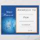 A stylish modern music certificate award with a bright blue music staff image perfect for encouraging a young musician. You can write in your own details. A great resource for any type of music teacher.
