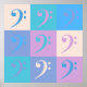 Do you like music themed art? This poster has a pattern of bass clefs done in yellow, blue, turquoise, pink and purple.