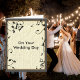 Beautiful wedding design with music symbols, leaves, and a butterfly silhouette. A colourful wood panelling and textured background design. This is ideal for weddings, anniversaries, and special occasions. Personalise this template with your information. Edit it for more changes.