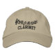 Get a fun Clarinet hat with embroidered music note design and clarinet slogan.