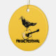 shows raven perched on a acoustic guitar from original art with "music festival" slogan ! ravens have a highly sophisticated language with hundreds of distinct sounds