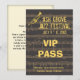 Designed for use at music festivals or events as an access pass. The theme of this design is a golden trumpet over old manuscript sheet music with a golden hue on a dark chocolate background, printed on 5" x 7" 110 lb cover-weight card in this example(but customisable, see below).
