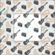 Customisable fabric with vintage illustrations of guitar and radio + pale pink "spaghetti" design. Don't forget the whole collection of fabric with revisited design of 50s style.