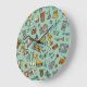 Music instruments, vintage sketch pattern. large clock