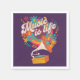 Colourful grunge retro style design with "Life is music" text design with retro flowers, circles and gramophone decoration