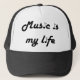 Music is My Life text design. This fun hat is great for the avid music lover out there! Background colours may be customised on certain products with lighter colours looking the best.