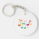 : A cartoon illustration of two colourful music notes and two stars on a pink background.
