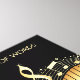 Trendy music keyboard with notes, treble clef, notes, and red lines on the bottom. Music instead of words
