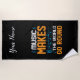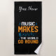 Music Makes The World Go Round in orange and blue on black. Makes a great gift for singers and musicians or anyone else who just truly loves music!