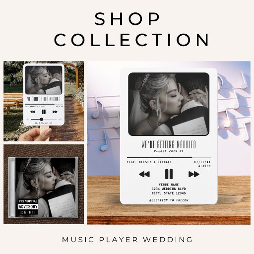 Music mp3 player wedding save the date card with photo. Personalise it with your event details and a picture of the bride and groom.