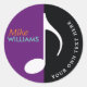 Simple design about music. White musical note in a half black / half purple circle, with your own name and custom text