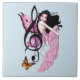 A cute little fairy all in pink with a music note and butterfly in a backdrop of blue