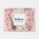 Welcome doormat with an illustration in a vintage romantic style. Musical notes, flowers, butterflies and a guitar. A lovely sentimental vibe.