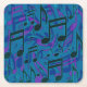 Music Notes Blue Green Purple Musical Pattern Square Paper Coaster