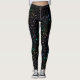 Music Notes Christmas Lights On Black Leggings. Colourful musical notes in blues, purple, pink, green and gold are poured onto black or your choice of any colour leggings for festive and flattering music themed attire. A great gift for your favourite musician or music lover.